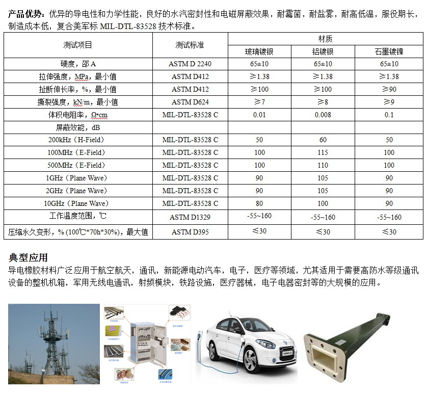 復合(he)導(dao)(dao)電(dian)(dian)(dian)橡膠(jiao)條是將含(han)銀(yin)等導(dao)(dao)電(dian)(dian)(dian)金屬粉體通過機械共混(hun)的(de)方式在硅橡膠(jiao)或其他(ta)橡膠(jiao)中(zhong)混(hun)合(he)均勻(yun),在特定工藝參數(shu)下采(cai)用復合(he)擠(ji)出成型(xing)與不導(dao)(dao)電(dian)(dian)(dian)硅橡膠(jiao)化(hua)學結合(he)制(zhi)備的(de)一(yi)種新型(xing)高(gao)(gao)分(fen)(fen)子材(cai)料。具有良好的(de)導(dao)(dao)電(dian)(dian)(dian)性和(he)(he)電(dian)(dian)(dian)磁屏蔽效(xiao)能,優異的(de)水汽密封(feng)性、耐鹽霧,耐霉菌,耐高(gao)(gao)低溫(wen),服役期長(chang),制(zhi)造成本低廉(lian)。按(an)照(zhao)材(cai)質不同可分(fen)(fen)為純銀(yin),鋁鍍(du)(du)(du)銀(yin),玻(bo)璃(li)鍍(du)(du)(du)銀(yin),銅鍍(du)(du)(du)銀(yin)和(he)(he)石墨鍍(du)(du)(du)鎳等。